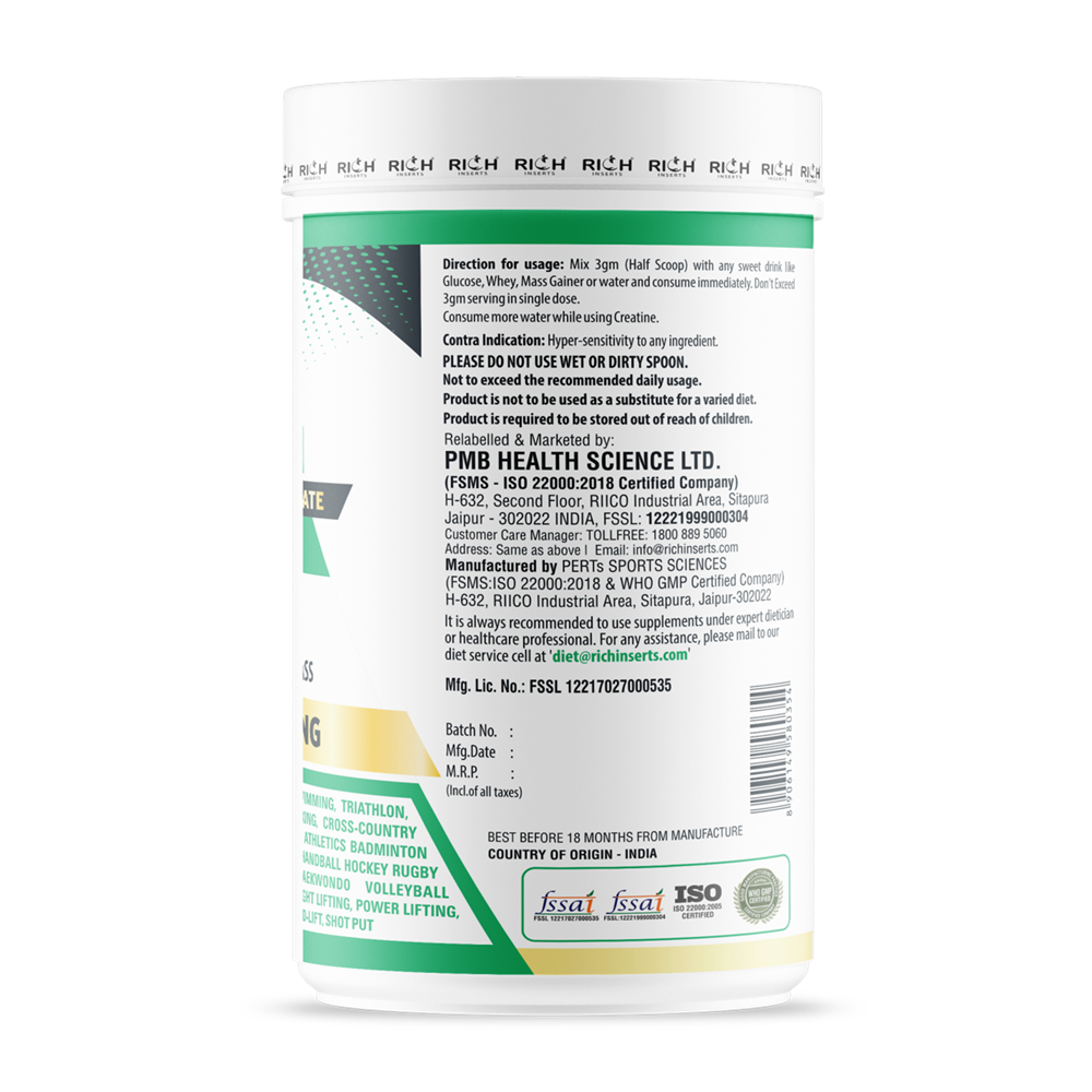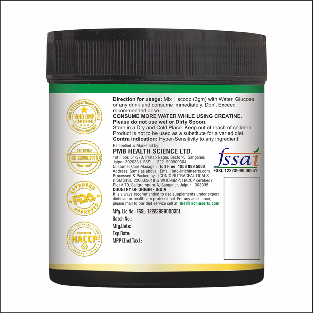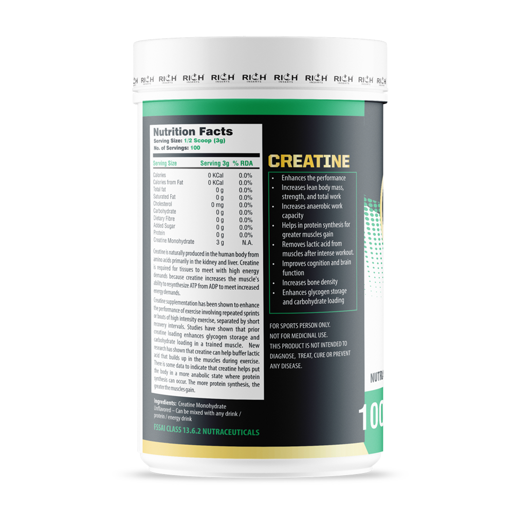 Embark on a journey of strength, endurance, and peak physical performance with RICH INSERTs Micronized Creatine – your key to unlocking unparalleled fitness achievements. This premium-grade, pure, and micronized creatine monohydrate has been meticulously formulated to redefine your workout experience.