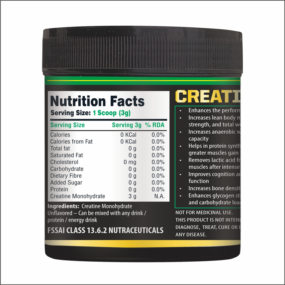 Interactions with Medications: Creatine may interact with some medications. Consult with a healthcare professional if you are taking medications to ensure there are no potential interactions.